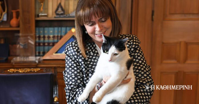 Ο Οδυσσέας κοιμάται απλωμένος πάνω στον μπλε καναπέ του Προεδρικού Μεγάρου. Αυτός ο παράξενος γάτος, απόμακρος, αλλά και παιχνιδιάρης, δεν επηρεάζεται από τις διακυμάνσεις της πολιτικής. Την ημέρα της συνάντησής μας μόλις είχε ολοκληρωθεί η επιτυχής ψηφοφορία στη Βουλή για την εκλογή του Κωνσταντίνου Τασούλα, διαδόχου της Κατερίνας Σακελλαροπούλου, αλλά ο Οδυσσέας παρέμεινε ατάραχος.