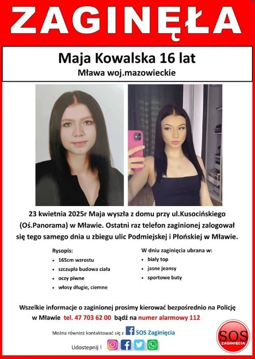 Σύμφωνα πάντα με την εφημερίδα Fakt, αναλύθηκαν, μεταξύ άλλων, καταγραφές από κάμερες ασφαλείας της πόλης, και ερευνήθηκαν οι περιοχές των οδών Podmiejska, Płońska, Szreńska και γειτονικών οικοπέδων. Παράλληλα, ελέγχθηκαν περιοχές του κοντινού σιδηροδρομικού σταθμού, καθώς και οι διαδρομές που οδηγούν προς το νοτιοανατολικό τμήμα της Μλάβα. Η σορός της 16χρονης, εντοπίστηκε μία εβδομάδα αργότερα, την Πέμπτη (01/05), σε σημείο που είχαν ήδη ερευνήσει οι Αρχές. «Το σώμα της βρέθηκε έξω, όχι σε κτίριο. Βρισκόταν σε θάμνους κοντά στις σιδηροδρομικές γραμμές» λέει, η επιθεωρήτρια Καταρζίνα Κουχάρσκα, εκπρόσωπος της Περιφερειακής Αστυνομικής Διεύθυνσης με έδρα το Ράντομ.