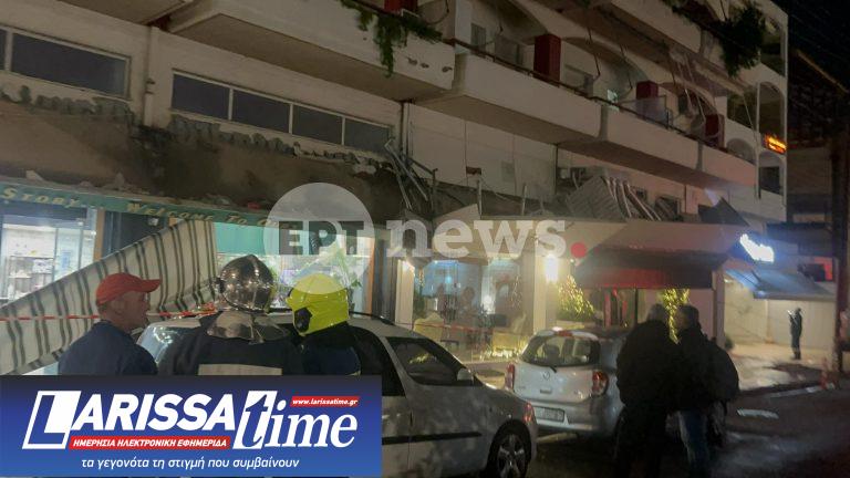 Στο σημείο παραμένουν τόσο μπάζα όσο και τμήματα της μαρκίζας που κρέμονται, τα οποία θα απομακρυνθούν ώστε να μην υπάρξει νέος κίνδυνος αποκόλλησης.