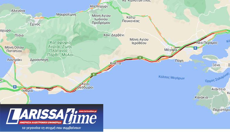 Ειδικότερα στην Αθηνών-Κορίνθου η κίνηση είναι ιδιαίτερα αυξημένη από τον Ισθμό μέχρι και τα διόδια Ελευσίνας, με τα μεγαλύτερα προβλήματα να εντοπίζονται στο κομμάτι από την Κινέττα μέχρι τα Μέγαρα και τη Νέα Πέραμο.