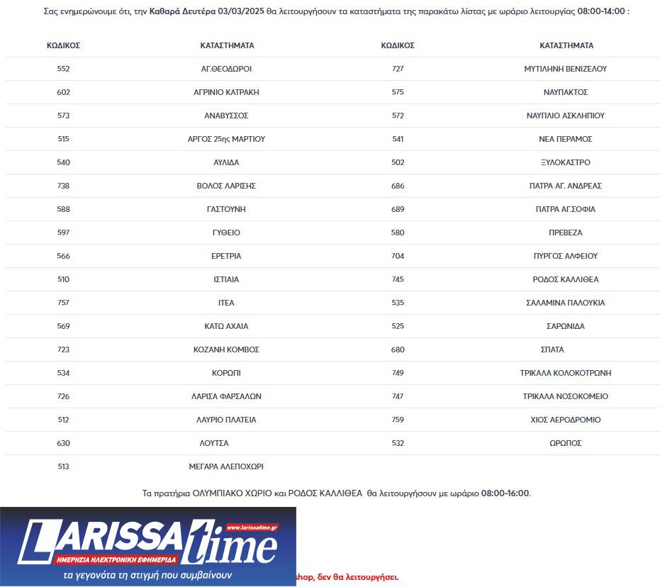 Τα myMarket θα έχουν κάποια καταστήματα (όχι όλα) που θα λειτουργήσουν με μειωμένο ωράριο. Τα υποκαταστήματα της παρακάτω λίστας θα λειτουργήσουν από τις 8 το πρωί μέχρι τις 2 το μεσημέρι.