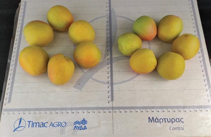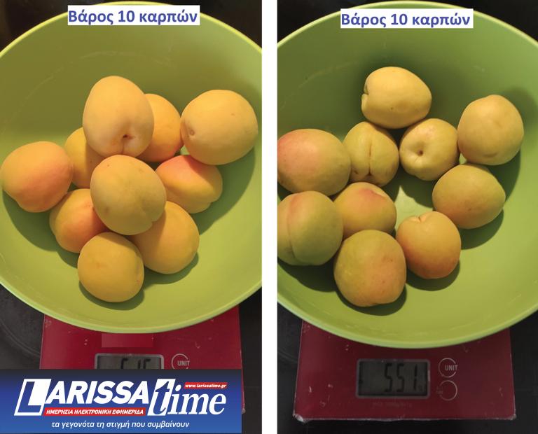 Σύγκριση βάρους 10 καρπών. Αριστερά έχει γίνει εφαρμογή με προϊόντα της Timac Agro | ΛΥΔΑ