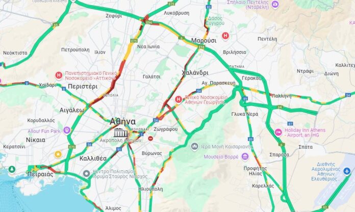 Παρασκευή σήμερα και για ακόμη μία ημέρα η κίνηση είναι αυξημένη σε αρκετούς δρόμους της Αττικής.