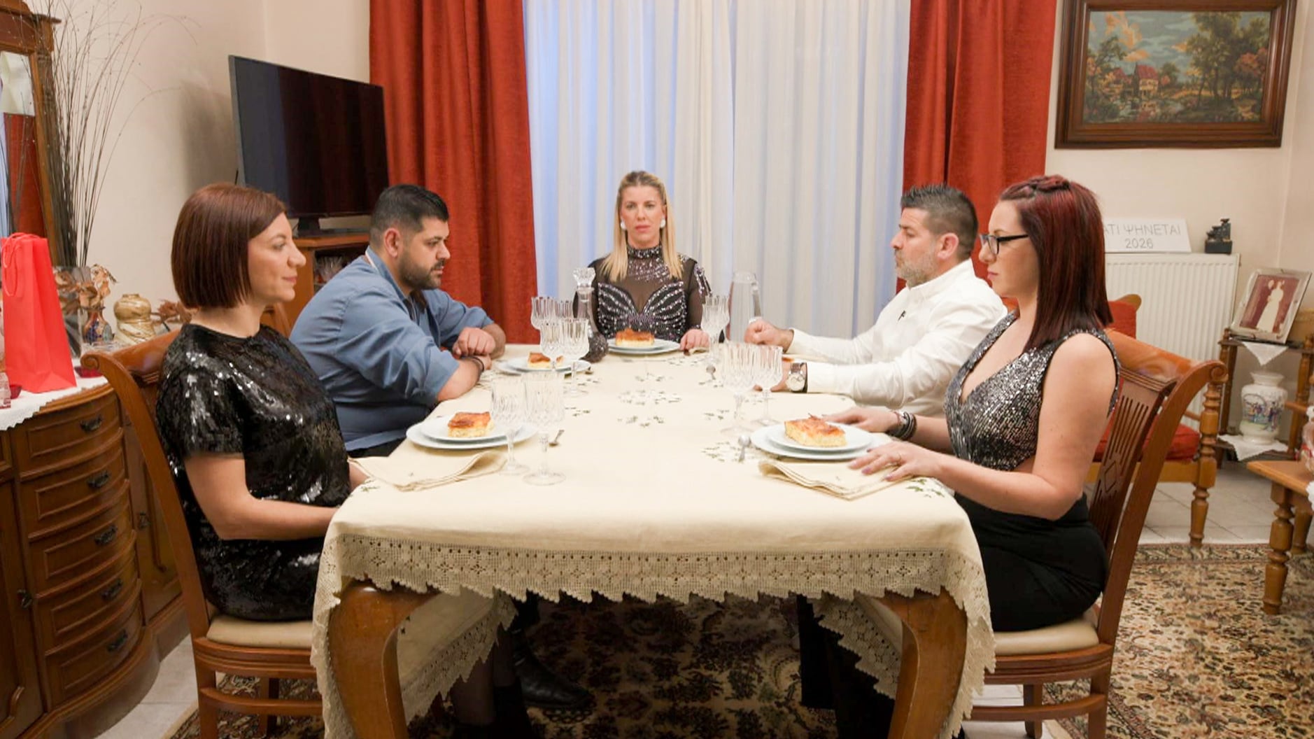 Το δείπνο ξεκινά συγκρατημένα, όμως η ένταση δεν αργεί να κάνει την εμφάνισή της.