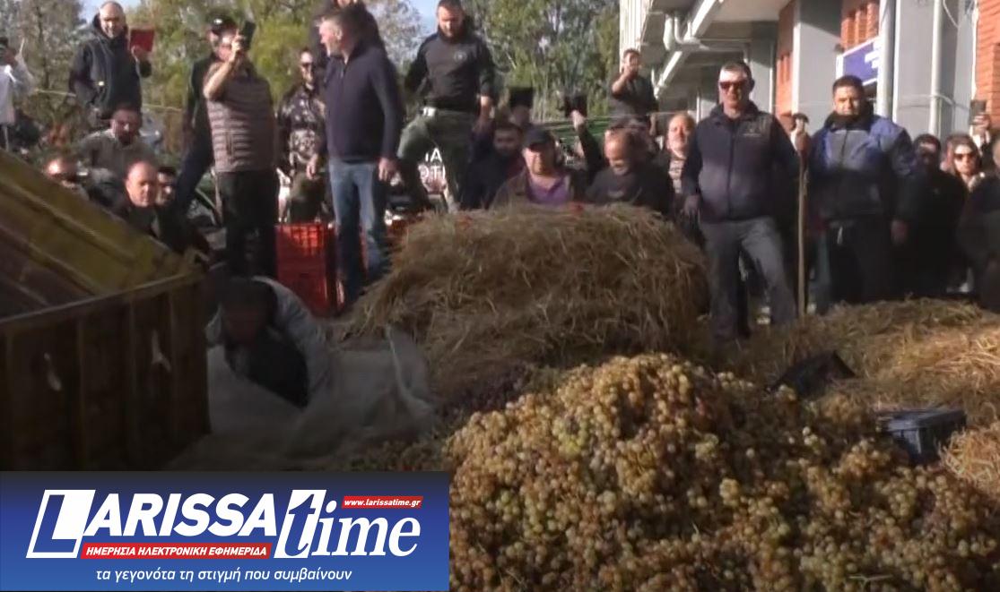 Καβάλα: Αγρότες χύνουν γάλα, πετάνε άχυρα και σταφύλια έξω από την Περιφέρεια