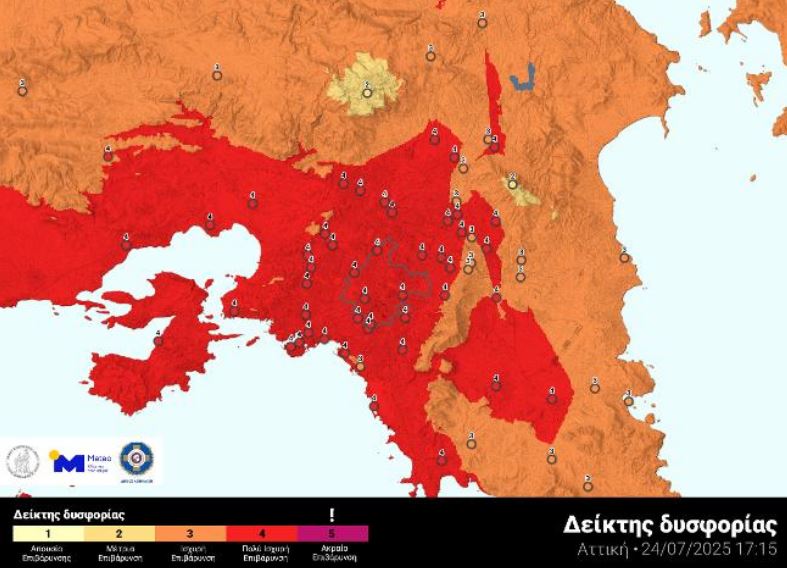 Ειδικά για το νομό Αττικής και την πόλη της Αθήνας, αξίζει να σημειωθεί ότι οι πολύ υψηλές θερμοκρασίες σε συνδυασμό με υψηλές τιμές της σχετικής υγρασίας, είχαν ως αποτέλεσμα να προκύψουν πολύ υψηλοί δείκτες δυσφορίας για αρκετές ώρες, προκαλώντας πολύ ισχυρή θερμική επιβάρυνση στον πληθυσμό.