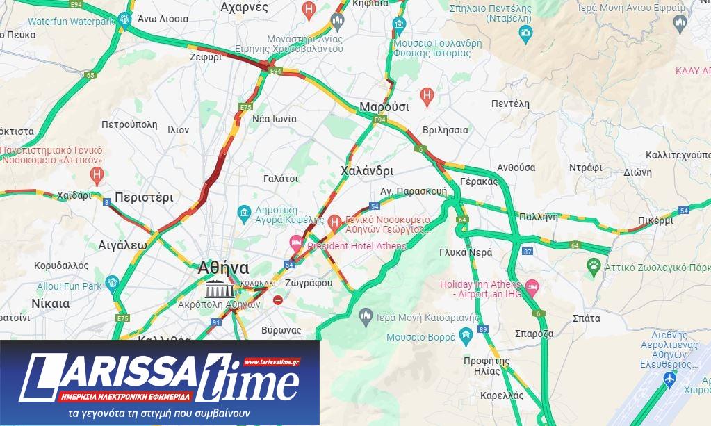 10΄-15΄ από κόμβο Πλακεντίας μέχρι κόμβο Κηφισίας.