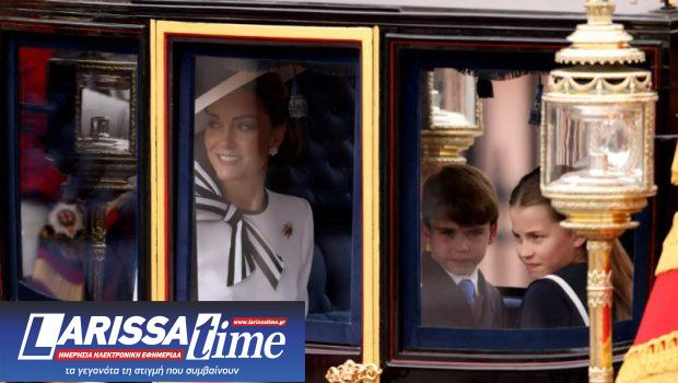 «Έφτασε στο παλάτι όπου θα μπει σε μια άμαξα μαζί με τα τρία παιδιά της»,δήλωσεη βασιλική ανταποκρίτρια Laura Bundock. «Θα κατευθυνθούν κατά μήκος του εμπορικού κέντρου προς το Horse Guards Parade, όπου θα παρακολουθήσουν το Trooping».