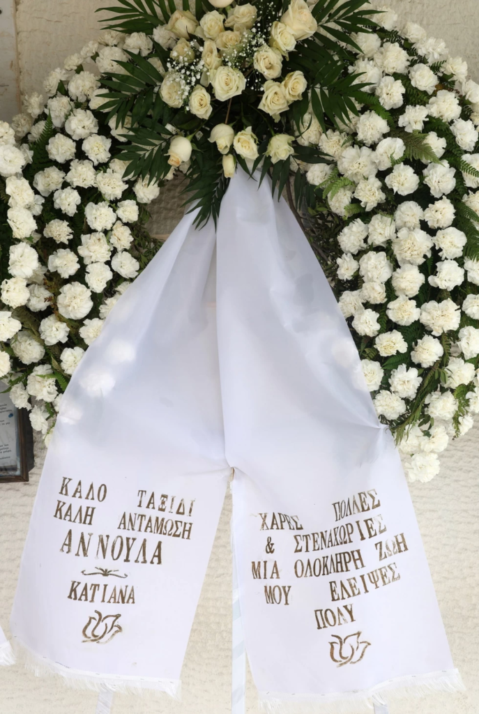 Συγκινεί το στεφάνι που έστειλε η Κατιάνα Μπαλανίκα στην κηδεία της Άννας Παναγιωτοπούλου.