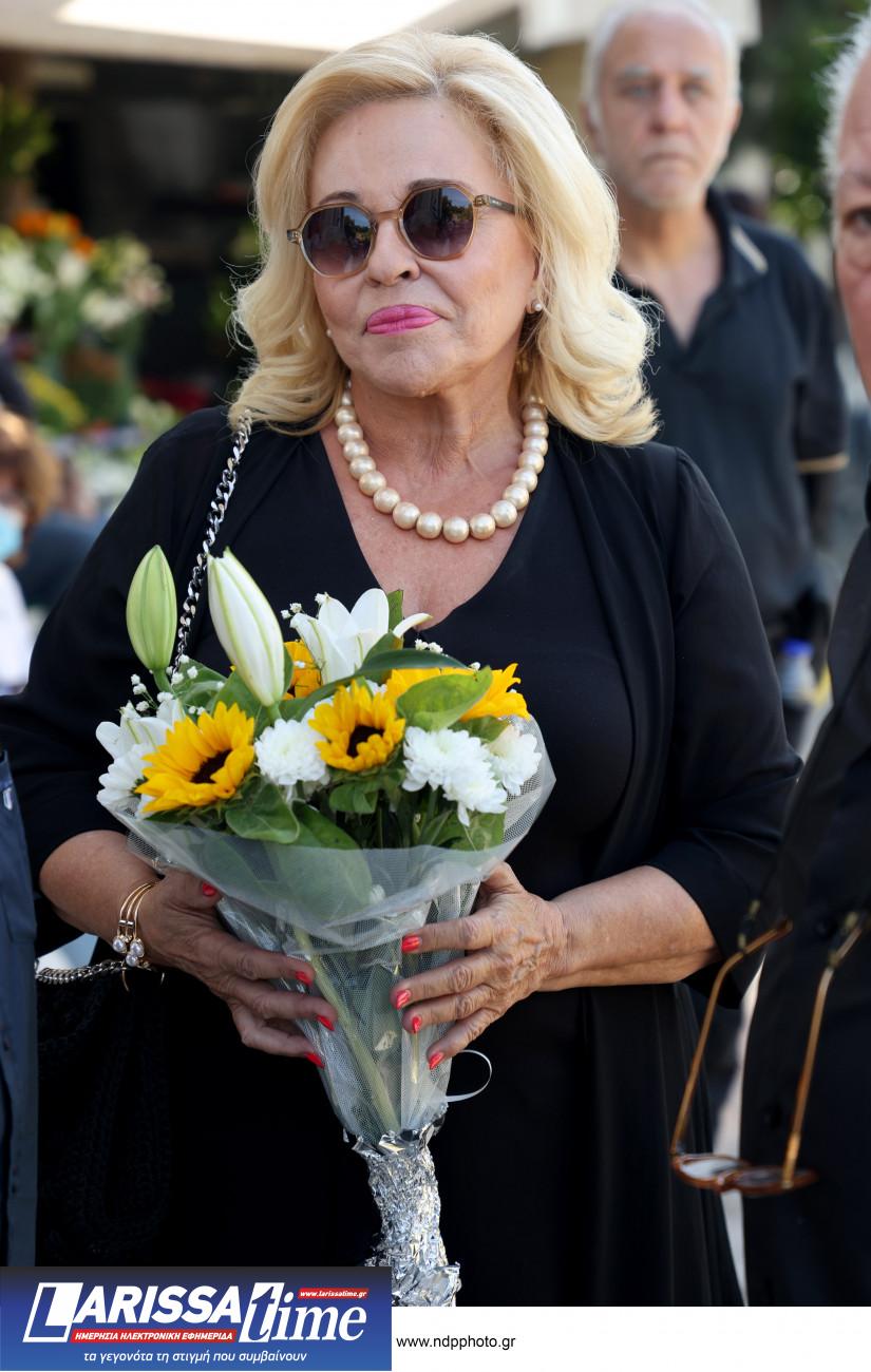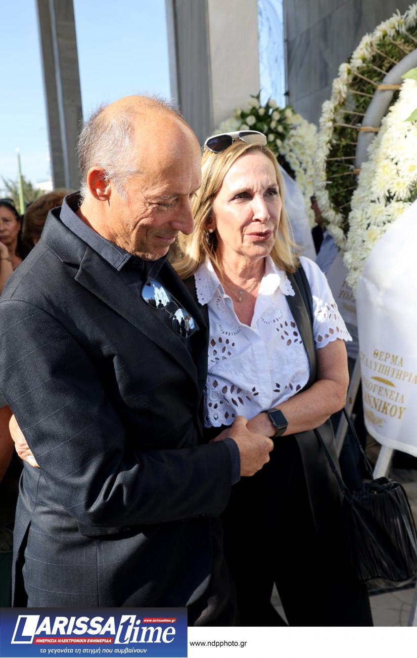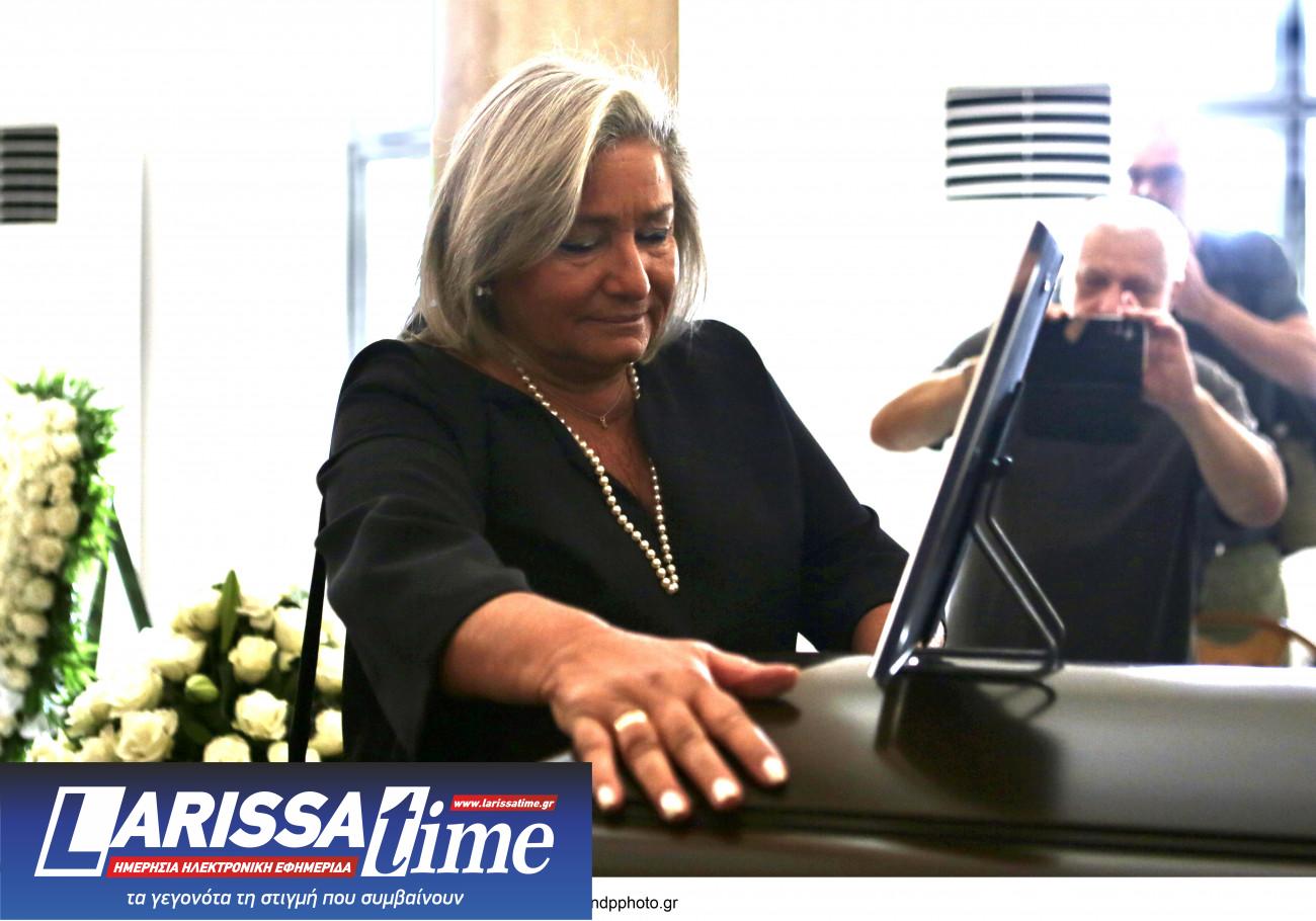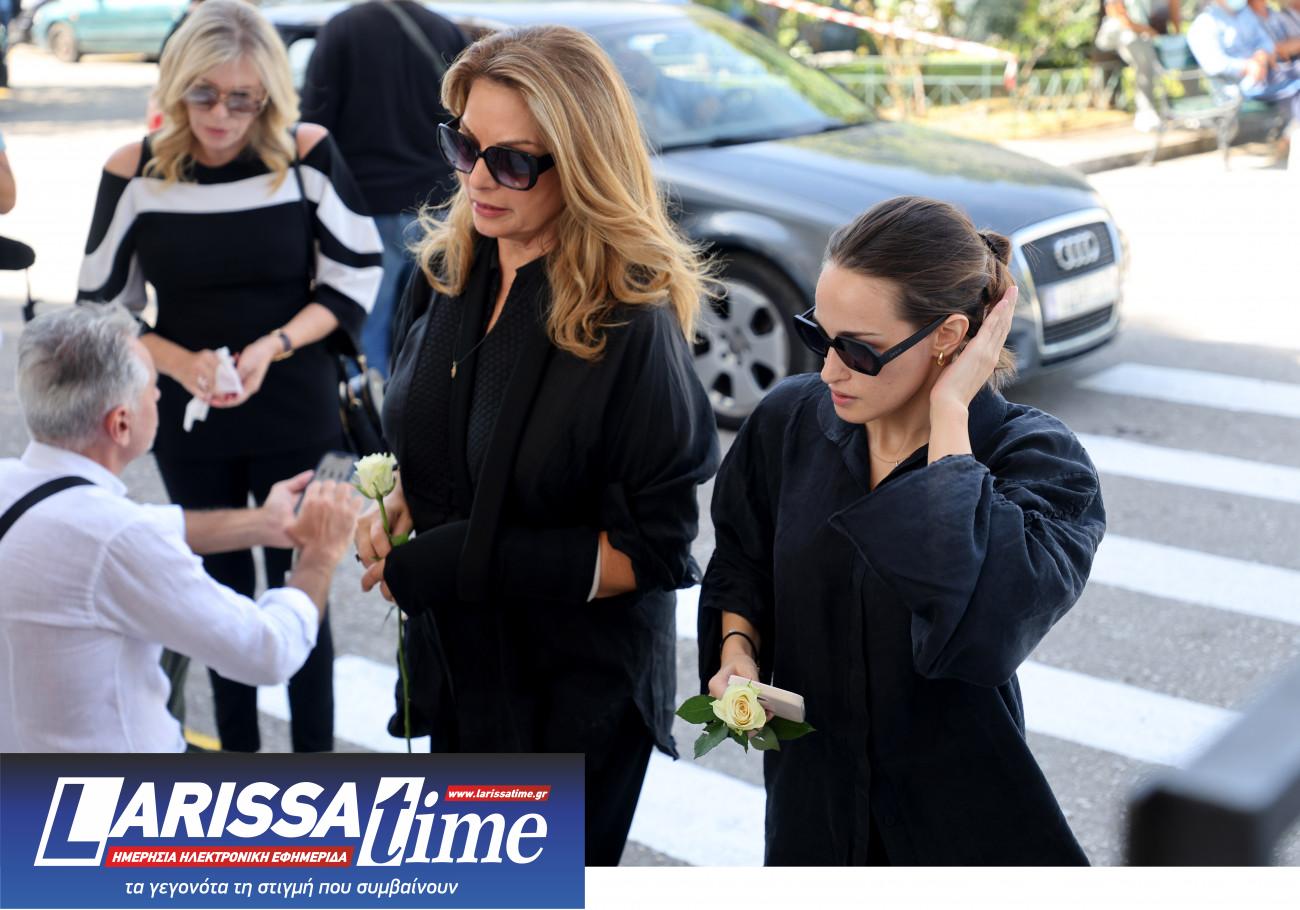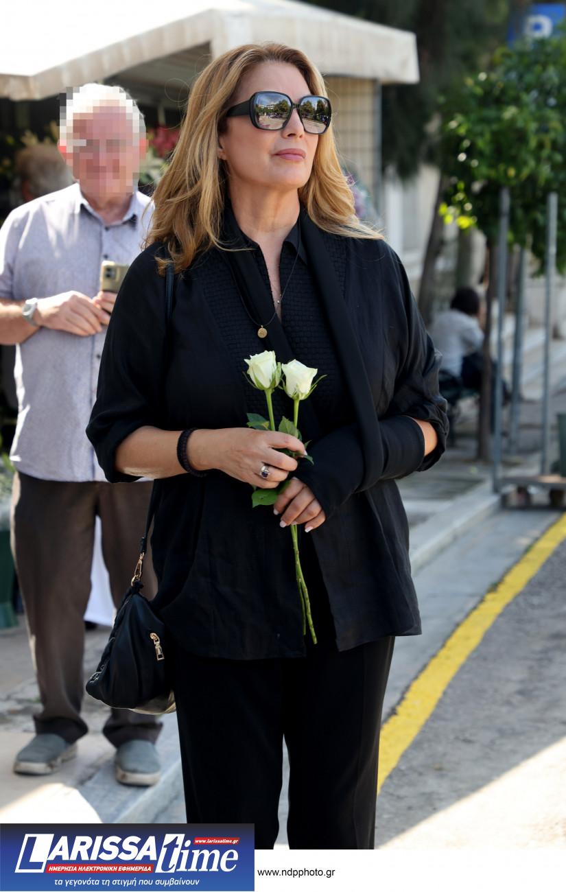 Η Λουκίλα Καρρέρ έφτασε στην κηδεία κρατώντας σφιχτά τα χέρια των δύο παιδιών του Μίμη Πλέσσα. Την Ελεάννα που απέκτησαν μαζί και τον Αντώνη, από τον πρώτο γάμο του με την Τζέλλα Πλέσσα.