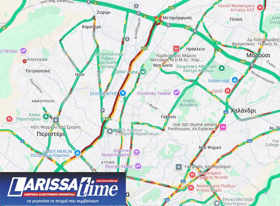 Όπως είναι λογικό, ο ήδη επιβαρυμένος Κηφισός είναι στο «κόκκινο» και οι οδηγοί που κινούνται στο ρεύμα καθόδου, έχουν μπλοκαριστεί λόγω της αυξημένης κίνησης.