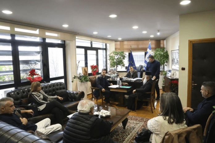 Η διενέργεια αυτοψίας στην οδό Βόλου από τις αρμόδιες Υπηρεσίες του Δήμου Λαρισαίων, αλλά και κυκλοφοριακές παρεμβάσεις, σε στοχευμένα σημεία βρέθηκαν επί τάπητος στη συνάντηση που είχε το πρωί της Δευτέρας ο Δήμαρχος Λαρισαίων, κ. Θανάσης Μαμάκος, με μέλη του Πολιτιστικού Συλλόγου «Άγιος Γεώργιος» και κατοίκους, στο Δημαρχείο.