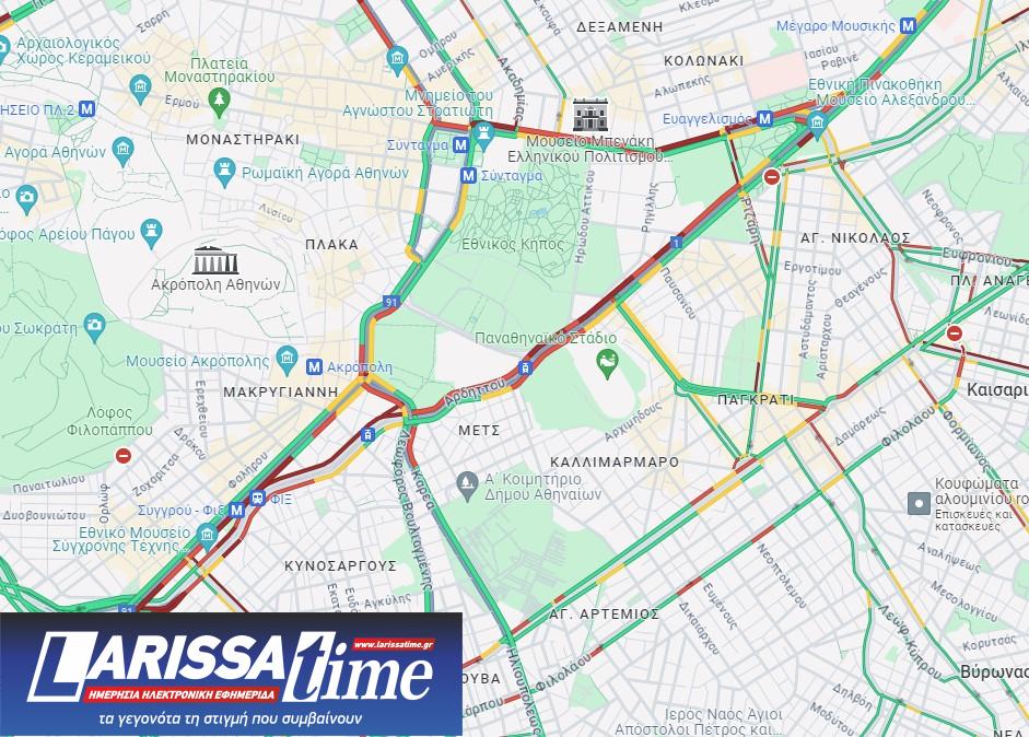 Στο «κόκκινο» οι δρόμοι στο κέντρο της Αθήνας