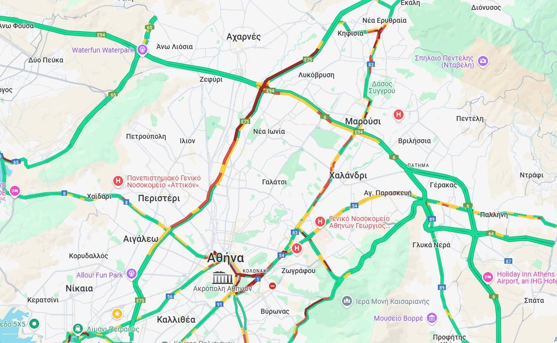 Η κίνηση ήταν ήδη αυξημένη στη Λ. Κηφισού από το μεσημέρι της Παρασκευής (29/11), ωστόσο, επιβαρύνθηκε ακόμη περισσότερο μετά το τροχαίο.
