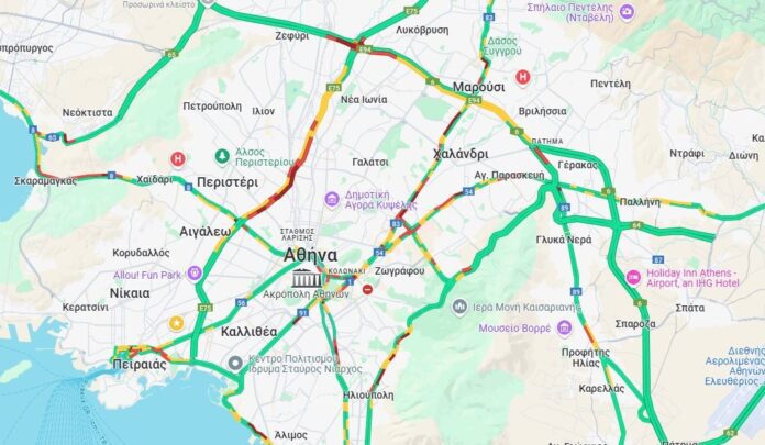 Για ακόμη μια φορά η κίνηση «χτυπά κόκκινο» σε αρκετούς δρόμους της Αττικής. Η έξοδος της Εθνικής Οδού Αθηνών- Κορίνθου, τα δύο ρεύματα της Αθηνών – Λαμίας και ο Κηφισός τμηματικά παρουσιάζουν προβλήματα.
