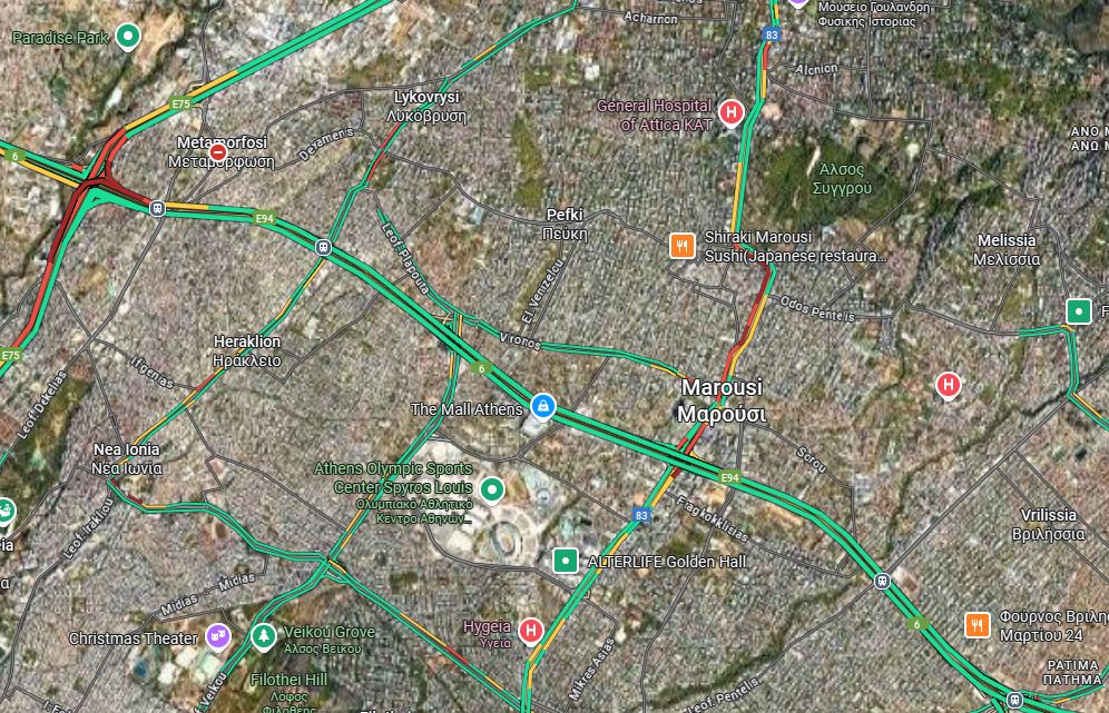 Δυσκολίες αντιμετωπίζουν οι οδηγοί και στην άνοδο της Λ. Κηφισίας, στο ύψος της Αττικής Οδού.