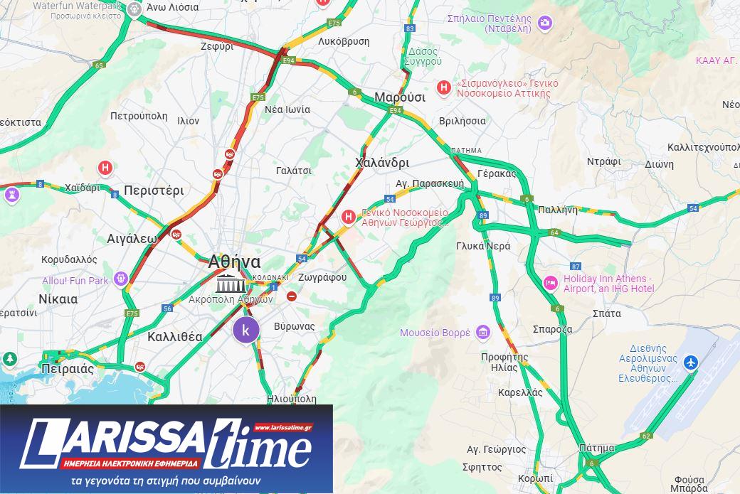 Καθυστερήσεις παρατηρούνται στο ρεύμα προς Αεροδρόμιο, στην έξοδο για Λαμία, από κόμβο Μεταμόρφωσης έως κόμβο Κηφισίας.