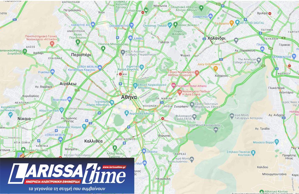 Όσοι ταξιδεύουν καλό είναι να ξεκινήσουν λίγο νωρίτερα, καθώς οι καθυστερήσεις είναι αρκετές. Παρακάτω φαίνεται ο χάρτης, ο οποίος δείχνει την κίνηση στους δρόμους του Λεκανοπεδίου Αττικής.
