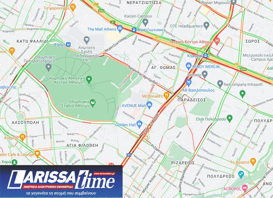 Παράλληλα αυξημένη είναι η κίνηση και στην άνοδο της Λεωφόρου Κηφισίας, ειδικά μέχρι το δαχτυλίδι.