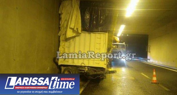 Τροχαίο ατύχημα με ανατροπή νταλίκας συνέβη λίγο μετά τις 8:30 το βράδυ της Κυριακής στην έξοδο της δεύτερης σήραγγας της εθνικής οδού Αθηνών – Λαμίας, στο ύψος του Αγίου Κωνσταντίνου.
