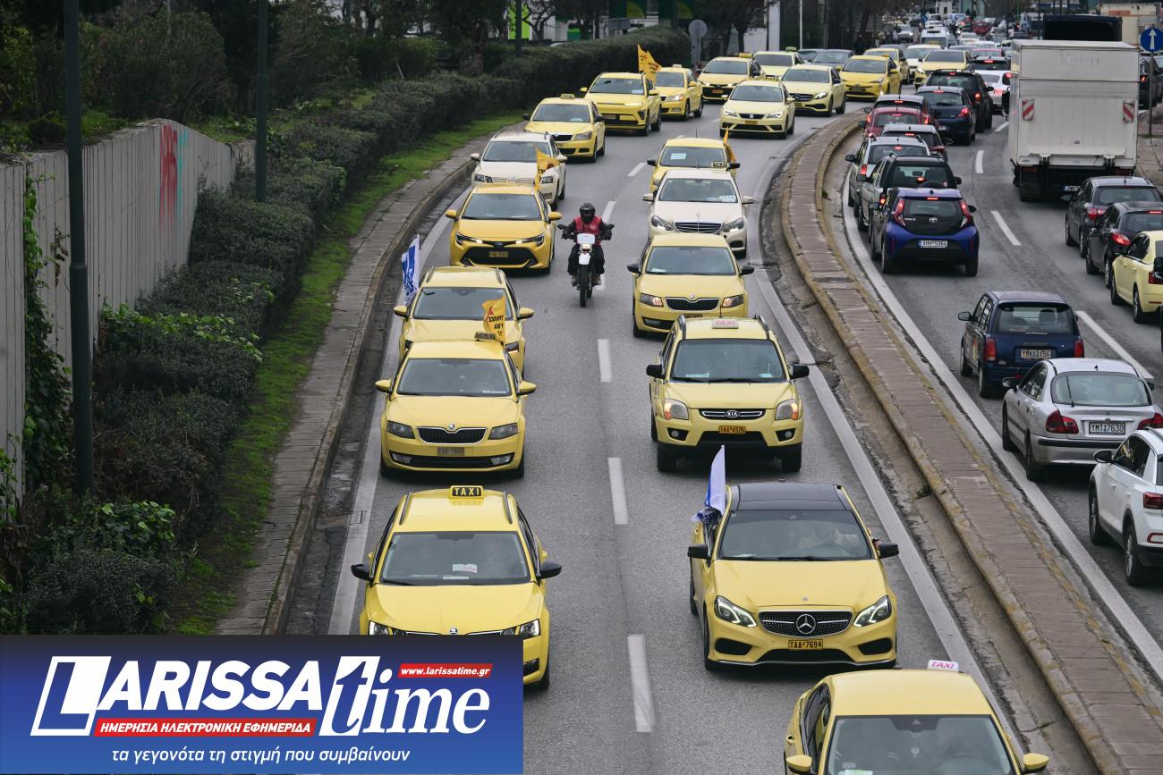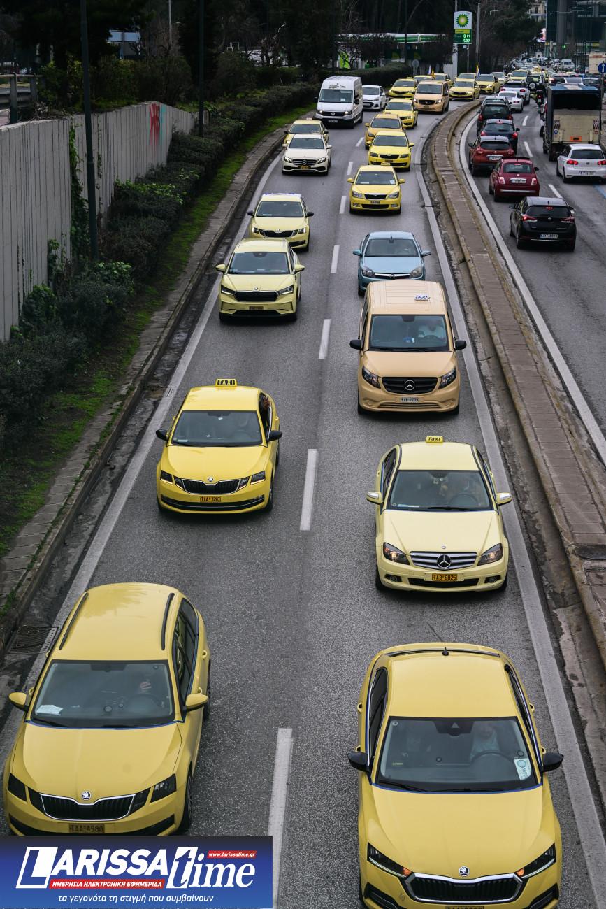 Η πορεία των επαγγελματιών αυτοκινητιστών βρίσκεται σε εξέλιξη, με τα ταξί να διέρχονται από κεντρικούς δρόμους του Λεκανοπεδίου.