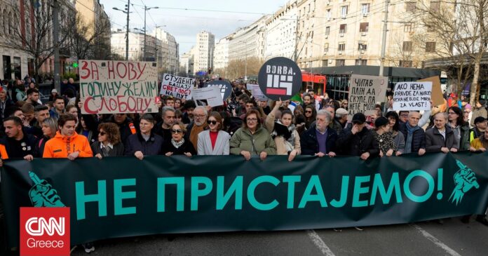 Οι φοιτητές των Πανεπιστημίων της Σερβίας διαδηλώνουν για περισσότερο από δύο μήνες ζητώντας να αποδοθούν πολιτικές και ποινικές ευθύνες για την τραγωδία στο Νόβι Σαντ, την 1η Νοεμβρίου του 2024, όταν κατέρρευσε το γείσο στον σιδηροδρομικό σταθμό και σκοτώθηκαν 15 άνθρωποι.