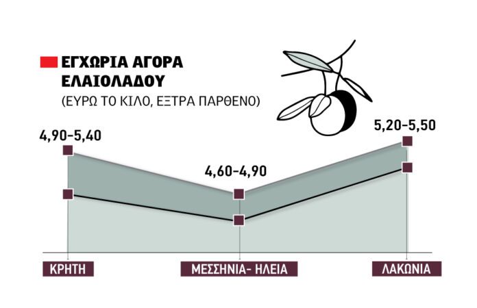 Βέβαια, το τί συµβαίνει στα γραφεία των Λακωνικών συνεταιρισμών σε µεγάλο βαθµό δεν αφορά την υπόλοιπη χώρα. Λέσβος, Κεντρική Ελλάδα -ίσως και Ιόνιο- καλοβλέπουν τα 5 ευρώ, αν και για την ώρα οι τιμές παίζουν λίγο πιο κάτω. Τα υψηλά της Λακωνίας διαφοροποιούνται σηµαντικά από βδοµάδα σε βδοµάδα καθώς (δυστυχώς) ο πωλητής είναι ένας και ο αγοραστής…πάλι ένας. Η αρνητική εξέλιξη του ροκανίσματος των υψηλών τις τελευταίες 3 βδομάδες δεν είναι απίθανο να αντιστραφεί, όμως κανείς δεν μπορεί να πει με σχετική βεβαιότητα πως θα συμβεί.