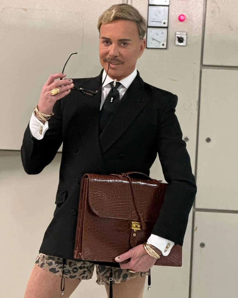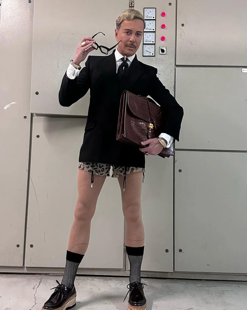 Ο σχεδιαστής εμφανίστηκε στο πλατό με ένα κοστούμι από πάνω, ενώ από κάτω φορούσε το εσώρουχό του. Κάτω από αυτό μάλιστα, φαινόταν πως φοράει ζαρτιέρες.