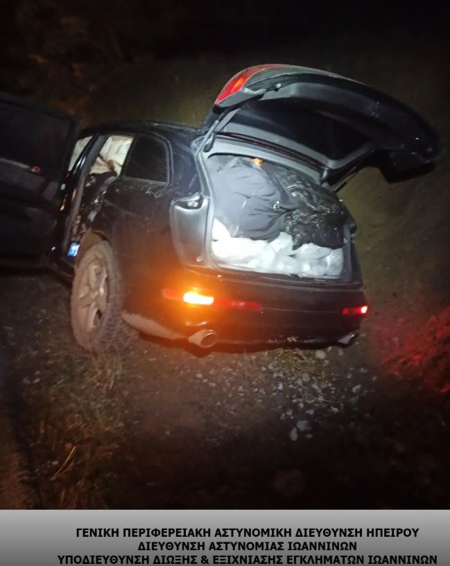 Το όχημα κατασχέθηκε, ενώ οι έρευνες του Τμήματος Δίωξης Ναρκωτικών, σε συνεργασία με το Τμήμα Εγκληματολογικών Ερευνών της Γενικής Περιφερειακής Αστυνομικής Διεύθυνσης Ηπείρου, για την ανακάλυψη της ταυτότητας του οδηγού, βρίσκονται σε εξέλιξη.