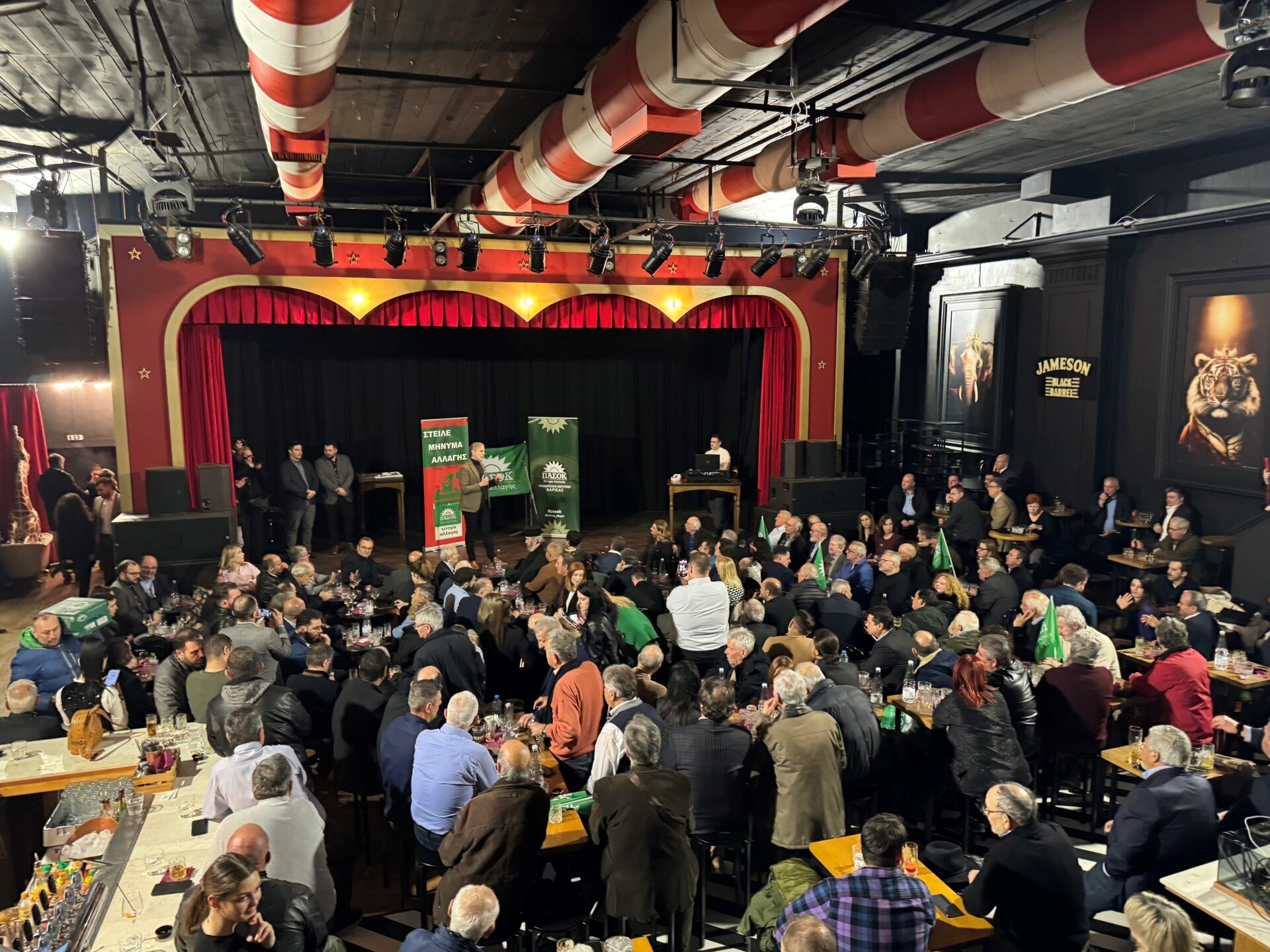 Κλίμα εκείνης της εποχής κυριάρχησε το βράδυ της Δευτέρας στην κοπή πίτας που διοργάνωσε η Νομαρχιακή Επιτροπή και η Τοπική Οργάνωση του κόμματος, σε γνωστή μουσική σκηνή της Λάρισας.