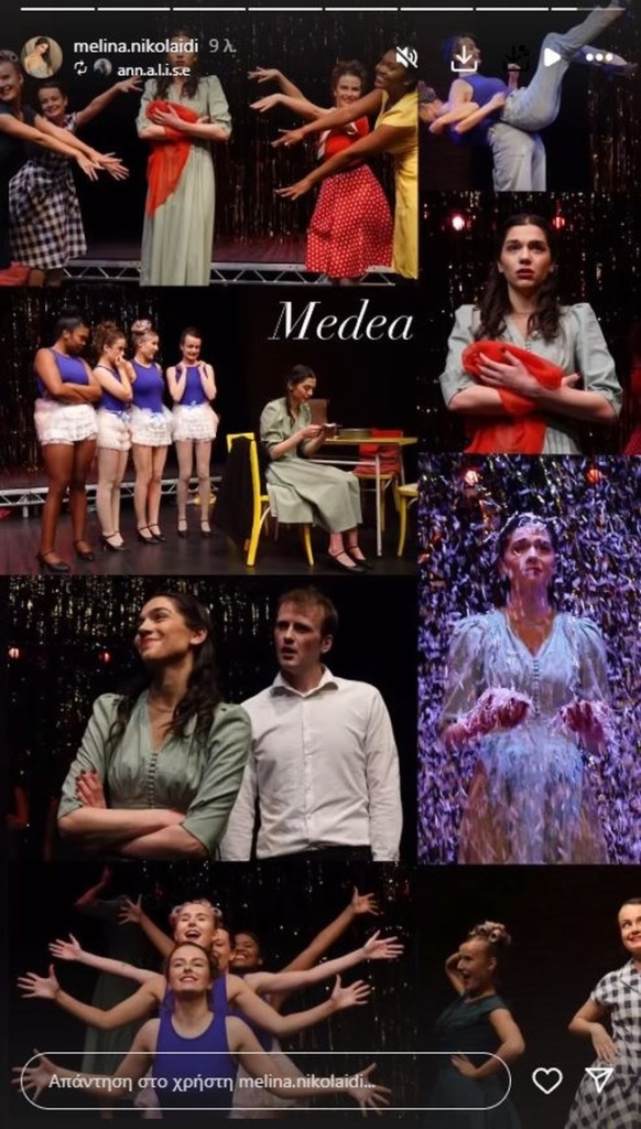 Η Μελίνα Νικολαΐδη πρωταγωνιστεί στην παράσταση της σχολής της όπου ενσαρκώνει τη Μήδεια, ωστόσο όχι στην κλασική εκδοχή του Ευριπίδη, αλλά σε μια μοντέρνα διασκευή, η οποία θέλει τους πρωταγωνιστές να ζουν το αμερικάνικο όνειρο.