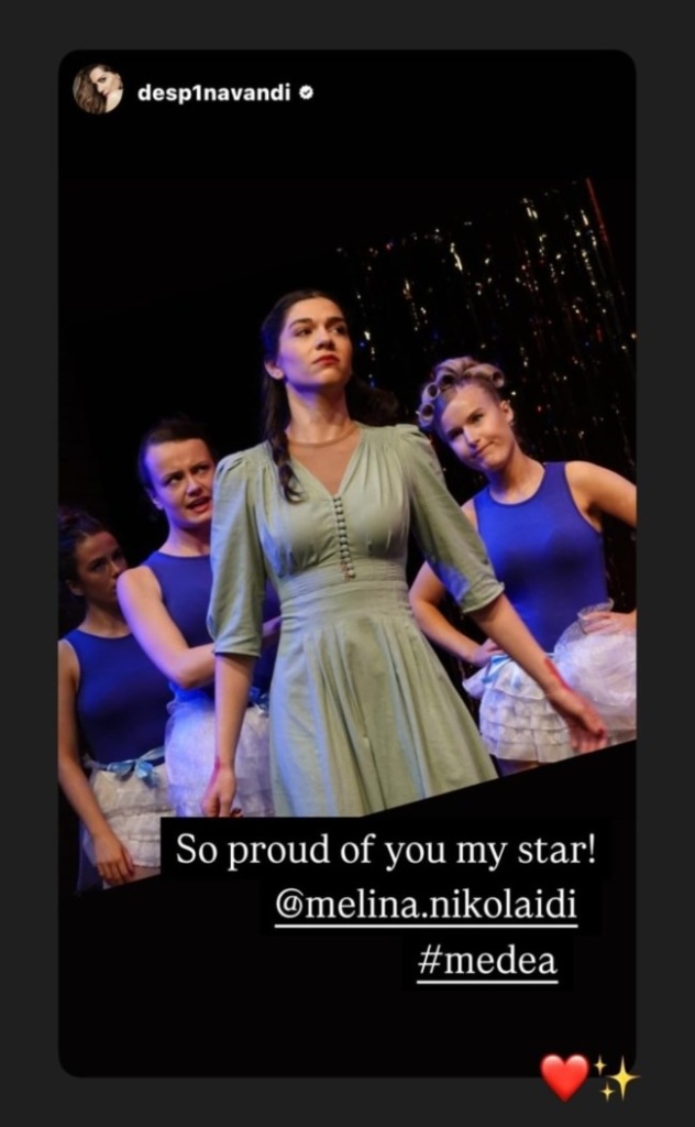Η μητέρα της Δέσποινα Βανδή πόσταρε φωτογραφία της Μελίνας από την παράσταση, γράφοντας: “Τόσο υπερήφανη για εσένα αστέρι μου”.