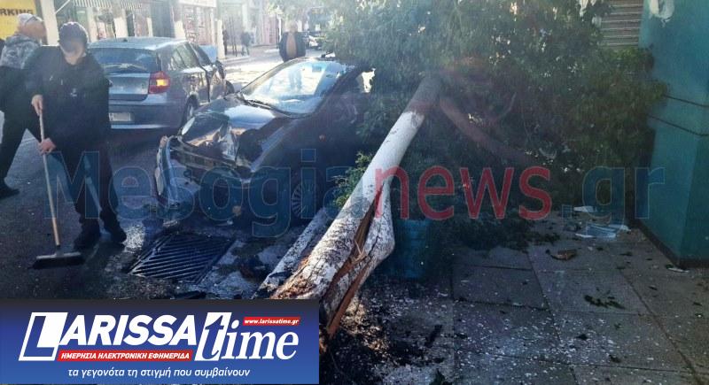 Η σύγκρουση ήταν σφοδρή και το σταθμευμένο όχημα εκτινάχθηκε και έπεσε πάνω σε ένα δέντρο που το ξερίζωσε.