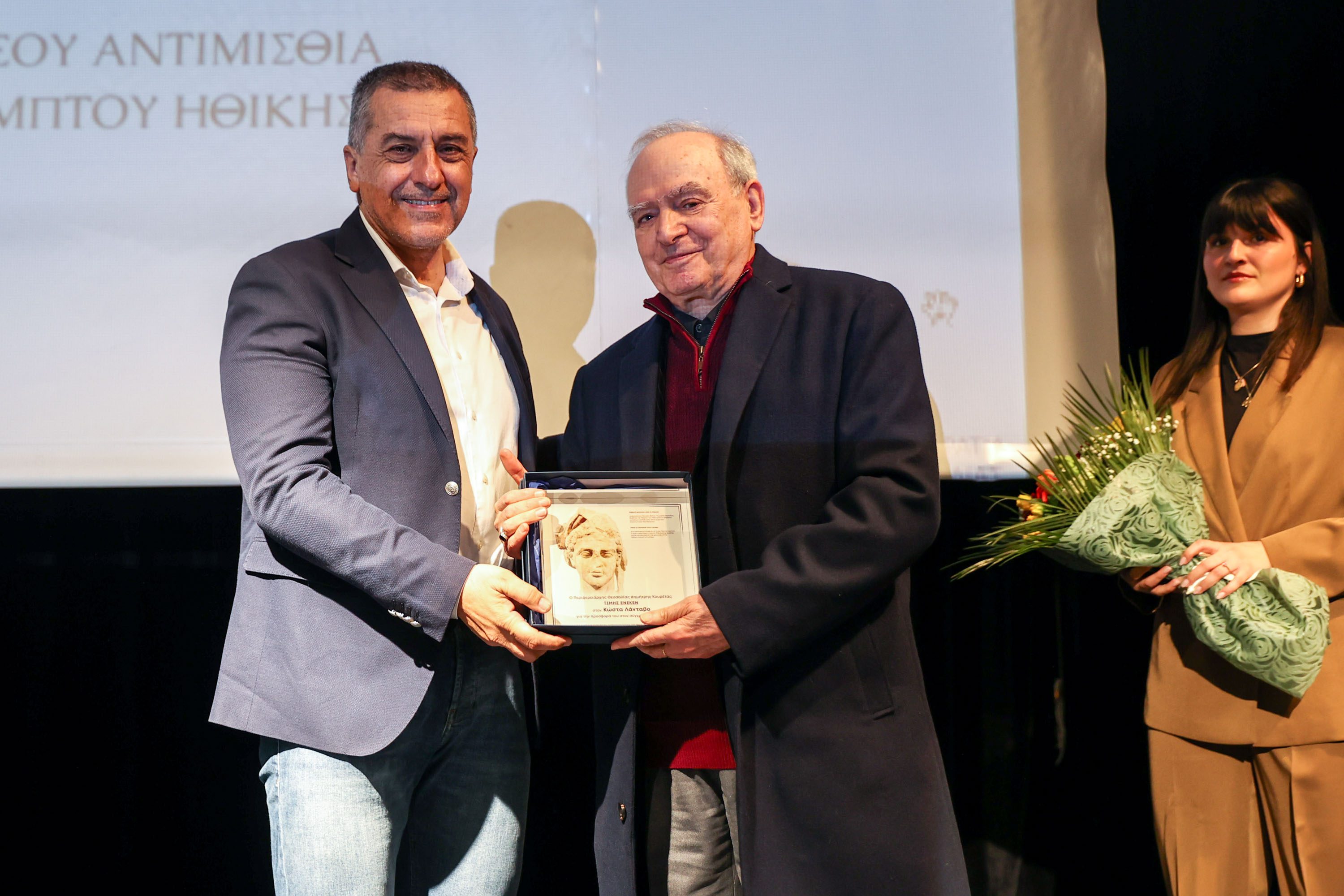 Μετά την παρουσίαση του προγραμματισμού για το 2026 ακολούθησε η βράβευση από τον Περιφερειάρχη Θεσσαλίας κ. Δημήτρη Κουρέτα σημαντικών προσωπικοτήτων των γραμμάτων και των τεχνών, οι οποίοι με το έργο και τη διαδρομή τους έχουν συμβάλει ουσιαστικά στην πνευματική και καλλιτεχνική ζωή της Θεσσαλίας και της χώρας και πιο συγκεκριμένα των κ.κ. Κώστα Λάνταβου, ιατρού και ποιητή, Νίκου Παπαθεοδώρου, ιστοριοδίφη και συλλέκτη, Χρήστου Παπανικολάου, εικαστικού, Βεατρίκης (Μπέττυ) Σαΐας – Μαγρίζου, συγγραφέα.