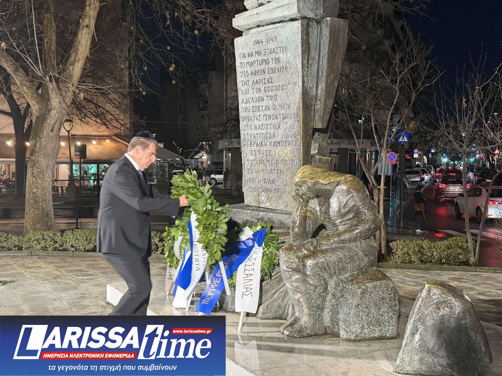 Στις 6 το απόγευμα στο Μνημείο Ολοκαυτώματος Ελλήνων Εβραίων Λάρισας, στην πλατεία Εβραίων Μαρτύρων Κατοχής, τελέστηκε επιμνημόσυνη δέηση και ακολούθησε κατάθεση στεφάνων από εκπροσώπους πολιτικών και στρατιωτικών αρχών, Πρεσβειών και Προξενείων, εβραϊκών οργανώσεων, φορέων και συλλόγων της πόλης.