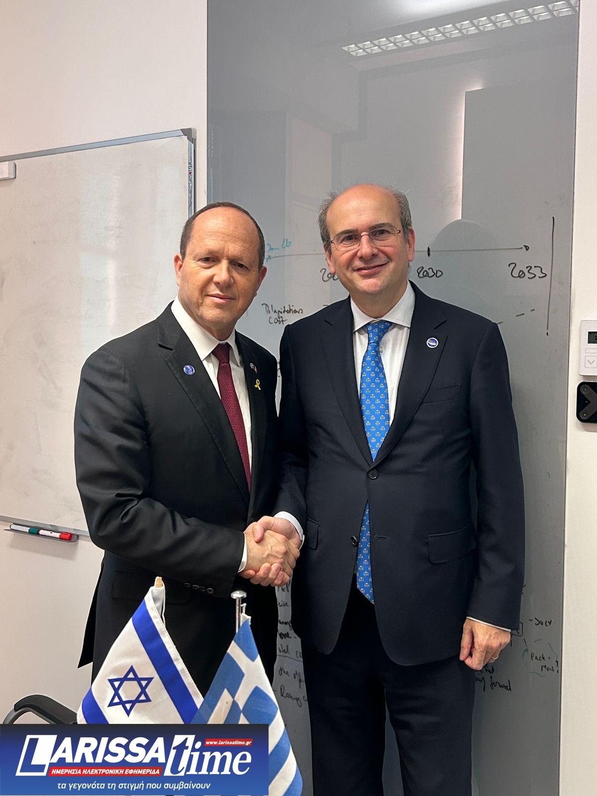 Ο Έλληνας Υπουργός συνάντησε επίσης τον Υπουργό Οικονομίας του Ισραήλ Nir Barkat, με τον οποίον αντάλλαξαν απόψεις για την κατάσταση στη Μέση Ανατολή. Συζητήθηκε πρόταση του Ισραήλ προς την Ελληνική πλευρά για την αναβάθμιση των σχέσεων των δύο χωρών στον τομέα της καινοτομίας, με δεδομένο ότι το Ισραήλ πρωτοπορεί παγκοσμίως στο συγκεκριμένο τομέα.