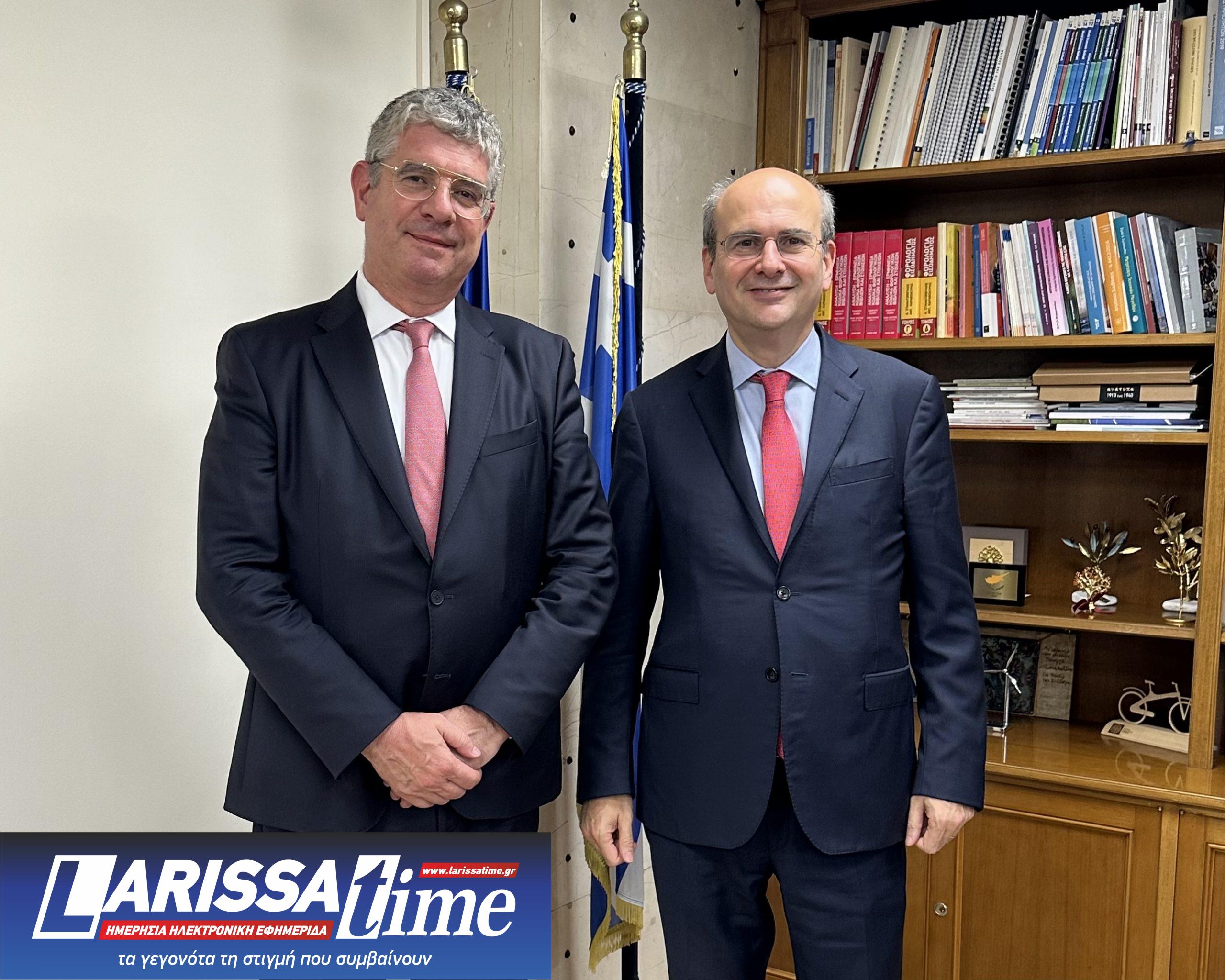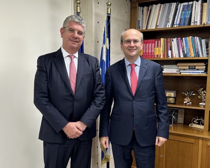 Ο Υπουργός Εθνικής Οικονομίας και Οικονομικών Κωστής Χατζηδάκης συναντήθηκε σήμερα με τον νέο Έλληνα αντιπρόεδρο της Ευρωπαϊκής Τράπεζας Επενδύσεων, κ. Γιάννη Τσακίρη.