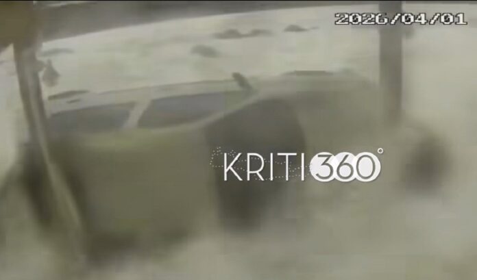 Σοκάρει το βίντεο που κατέγραψε κάμερα ασφαλείας στην Παλαιόχωρα Χανίων, το οποίο δείχνει καρέ-καρέ τα ορμητικά κύματα να μαγνητίζουν ένα παρκαρισμένο αυτοκίνητο και να το παρασύρουν.