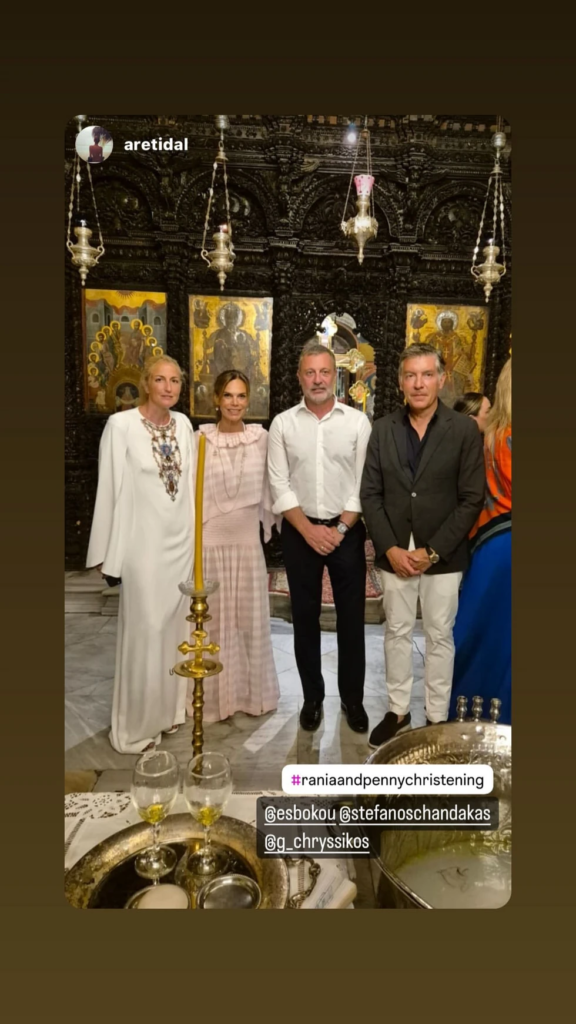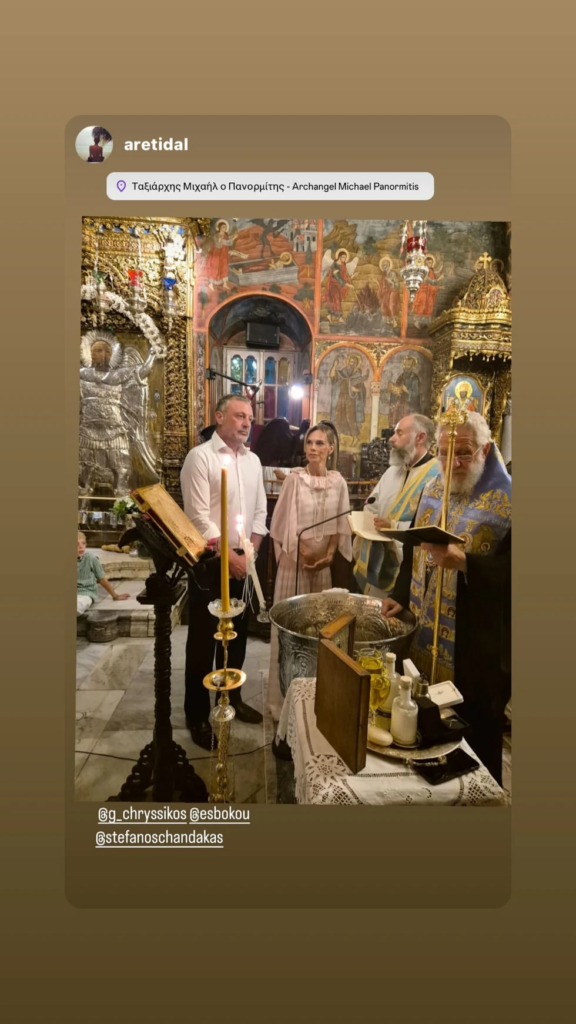 Τη μικρή κόρη τους βάφτισαν στη Σύμη ο Στέφανος Χανδακάς. Το ιερό μυστήριο πραγματοποιήθηκε στη Μονή του Αρχαγγέλου Μιχαήλ του Πανορμίτη. Νονοί ήταν η Αρετή Δαλακούρα και ο Γιώργος Χρυσικός.
