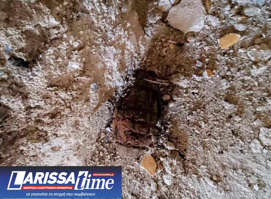 Η χειροβομβίδα στο σημείο που εντοπίστηκε