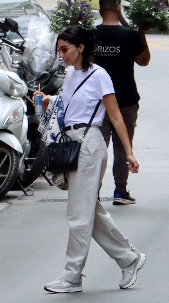 Για την εμφάνισή της η Ολυμπία Χοψονίσου επέλεξε ένα απλό ντύσιμο με basic κομμάτια που αναβάθμισε η επώνυμη τσάντα της.