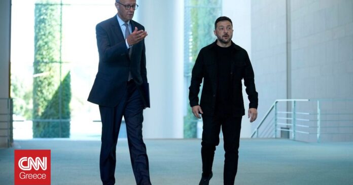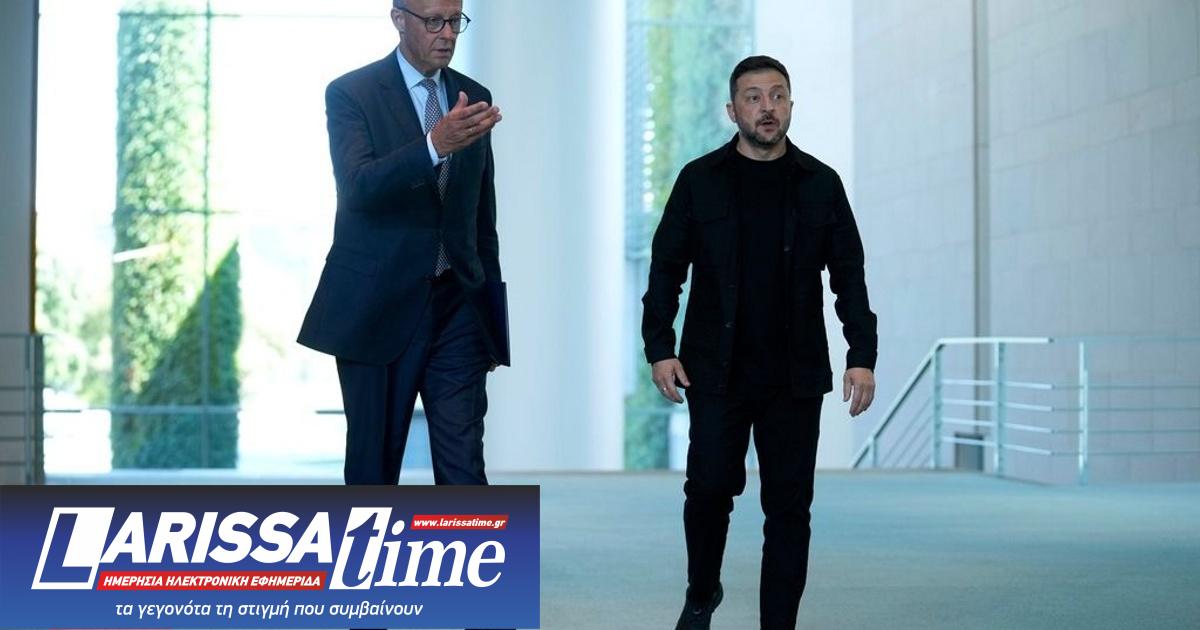 Ο Βολοντίμιρ Ζελένσκι έγινε δεκτός χθες, Κυριακή, το απόγευμα στο Βερολίνο στην καγκελαρία από τον Φρίντριχ Μερτς. Αμερικανικές, ουκρανικές και ευρωπαϊκές σημαίες ξεδιπλώθηκαν για την περίσταση.