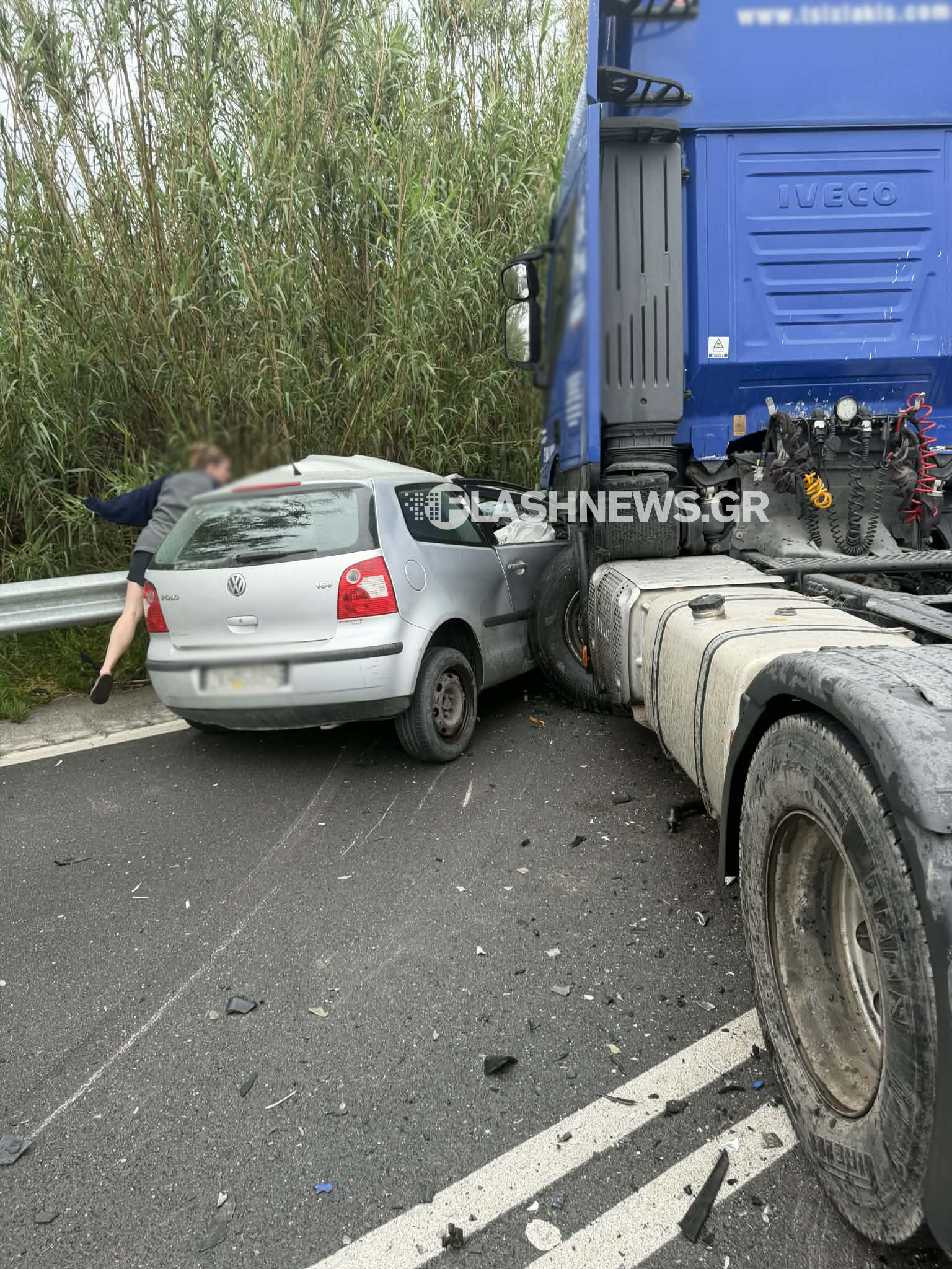 Το τροχαίο έγινε λίγο μετά τις 18:00, όταν ένα αυτοκίνητο συγκρούστηκε με έναν τράκτορα, με αποτέλεσμα και τα δύο οχήματα να εκτραπούν της πορείας τους και να καταλήξουν στο πλάι του δρόμου, σύμφωνα με την ιστοσελίδα flashnews.gr.