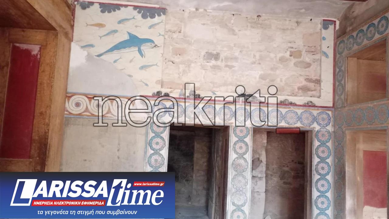 Σοβαρό περιστατικό σημειώθηκε σήμερα στον αρχαιολογικό χώρο της Κνωσού στην Κρήτη, καθώς κατέρρευσε τμήμα τοιχογραφίας με τα δελφίνια που χρονολογείται από τη δεκαετία του 1960.