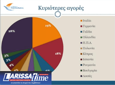 Σχετικά με τις αγορές, οι κυριότεροι αγοραστές των Κρητικών προϊόντων είναι η Ιταλία (104,4 εκ. ευρώ και μερίδιο 19,4%), η Γερμανία (96,6 εκ. ευρώ και μερίδιο 17,9%), η Γαλλία (34,6 εκ. ευρώ, μερίδιο 6,4%), η Ολλανδία (26,2 εκ. ευρώ, μερίδιο 4,9%) και οι Η.Π.Α. (25,1 εκ. ευρώ και μερίδιο 4,7%). Τη δεκάδα των κυριότερων αγοραστών κλείνουν η Πολωνία, η Κύπρος, η Ισπανία, η Ρουμανία και η Βουλγαρία.