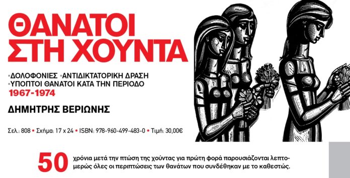 Όπως επισημαίνουν για το βιβλίο που έγραψε ο Δημήτρης Βεριώνης σε ανακοίνωσή τους: «50 χρόνια μετά την πτώση της χούντας για πρώτη φορά παρουσιάζονται λεπτομερώς όλες οι περιπτώσεις των θανάτων που συνδέθηκαν με το καθεστώς.