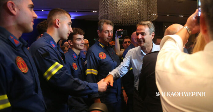 «Βρισκόμαστε εδώ για να σας πω προσωπικά ένα μεγάλο ευχαριστώ για τις μάχες που δώσατε στο πεδίο, έως σήμερα, στο πιο θερμό καλοκαίρι το οποίο έχει καταγραφεί τα τελευταία 40 χρόνια με την Κλιματική Κρίση πια να είναι παρούσα, με πολύ περισσότερες φωτιές από πέρυσι», είπε ο κ. Μητσοτάκης.