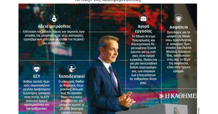 Για παράδειγμα, χθες υπήρξαν ανακοινώσεις γύρω από δύο σημαντικά θέματα που αφορούν τους πολίτες. Το πρώτο είναι η επέκταση της ειδικής άδειας και παροχής προστασίας της μητρότητας σε νέες κατηγορίες εργαζόμενων μητέρων με στόχο την περαιτέρω στήριξή τους, κάτι που ανακοίνωσε η υπουργός Εργασίας Νίκη Κεραμέως. Ηδη η κυβέρνηση από το 2022 επέκτεινε την άδεια μητρότητας από έξι σε εννέα μήνες και το 2023 καθιερώθηκε για πρώτη φορά η 9μηνη άδεια μητρότητας και για ελεύθερες επαγγελματίες, αυτοαπασχολούμενες και αγρότισσες. Με τη νέα κοινή υπουργική απόφαση, η άδεια μητρότητας επεκτείνεται πλέον και σε εργαζόμενες σε τράπεζες, ΔΕΚΟ και ΜΜΕ. Δικαιούχοι της παροχής είναι όσες μητέρες γέννησαν από 25/11/2022 και εφεξής. Ολες αυτές οι μητέρες έχουν το δικαίωμα να αιτηθούν τη χορήγηση της ειδικής άδειας και να βγουν σε άδεια παρότι ο τοκετός έχει συμβεί από 25/11/2022 και έπειτα. Ο εργοδότης δεν έχει το δικαίωμα να αρνηθεί τη χορήγηση της παροχής. Δεν τίθενται εισοδηματικά κριτήρια.