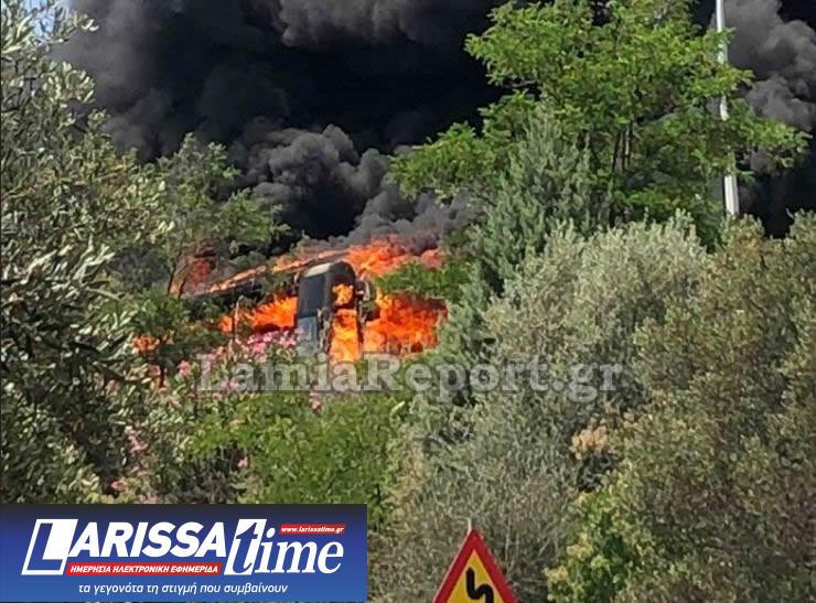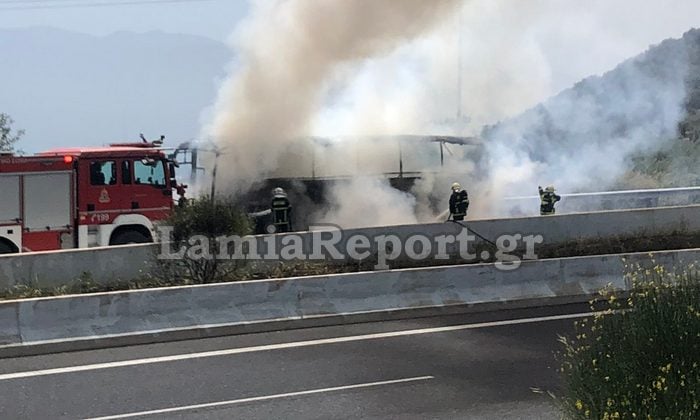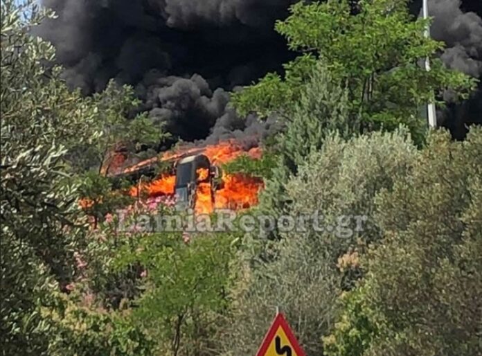 Η πυρκαγιά φαίνεται να ξεκίνησε από τη μηχανή και γρήγορα εξαπλώθηκε σε ολόκληρο το όχημα, ενώ ακούγονταν εκρήξεις, σύμφωνα με το lamiareport.gr.