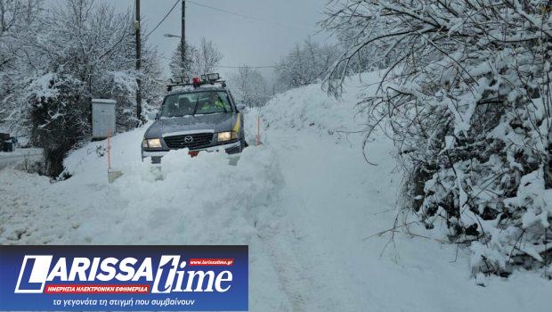 Πυκνό χιόνι στην Οίτη και τα ορεινά χωριά στη Λαμία